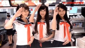 Da lässt man sich den Burger doch gleich noch mal so gut schmecken! In allen McDonalds in Taiwan hat man in den letzten Tagen des Jahres 2013 die Mitarbeiterinnen in immer neue Cosplay-Outfits gesteckt, um auf diese Weise den Countdown des Jahres einzuleiten. Hier seht ihr die Mitarbeiterinnen in Schulmädchen-Uniformen, davor traten sie als Stewardessen, Maids und sogar in Polizei-Uniformen in Erscheinung. Eine nette Idee, die man auch mal hierzulande ausprobieren sollte…