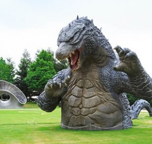 Noch bis zum 31. August ist eine knapp sieben Meter hohe Godzilla-Statue im Midtown Park in Tokio zu sehen. Die Statue, die sich ab der Hüfte aus dem Boden schält, wurde zum Start des neuen Godzilla-Films im Park platziert. Darüber hinaus finden sich im gesamten Park Fußspuren der Riesenechse wieder.