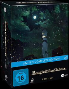 Ab 27. November kann kann die 18-teilige Serie “Boogiepop and Others” als Komplettausgabe im DVD- oder Blu-ray-Format über die Website Animoon-Publishing (hier) bestellt werden. Im regulären Handel erscheint die Mystery-Serie am 4. Dezember. „Boogiepop and Others“ entführt in eine düstere Welt. Schauplatz ist die Shinyo Academy, an der unheimliche Dinge vor sich gehen: Einige Schülerinnen sind spurlos verschwunden, andere haben sich in lethargische Hüllen ihrer selbst verwandelt. Darüber hinaus scheinen übernatürliche Kreaturen ihr Unwesen an der Schule zu treiben, unter ihnen auch die mysteriöse Boogiepop, ein Alter Ego der Schülerinn Touka. Doch welches Ziel verfolgt Boogiepop?