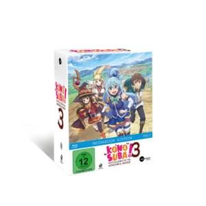 Ab heute ist das erste Volume der dritten Staffel von “Konosuba” über den Animoon-Shop (hier) erhältlich, bevor es ab 12. Dezember auch im regulären Handel zur Verfügung steht. Auch in der dritten Staffel stehen die Abenteuer der Gruppe wieder im Mittelpunkt, aufgelockert wird das Geschehen mit den Träumereien von Kazuma, der natürlich aufgrund seiner drei außerordentlich heißen Begleiterinnen nicht selten versucht ist, diesen auch mal die Melonen zu massieren. Doch über das Schnuppern an der getragener Kleidung der Girls ist er dabei nicht hinausgekommen. Kazuma ist indes damit beschäftigt, seine Abenteurerklasse zu verändern, kommt aber von dem Vorhaben ab, da er einen magischen Gegenstand bekommen erhält, mit dem er unendlich Geld erschaffen könnte … „KonoSuba“ ist eine kurzweilige Mixtur aus Fantasy, Comedy und Erotik, die mit allerlei schrägen Charakteren und einer gehörigen Portion Otaku-Referenzen zu begeistern versteht. Wer einer Kombination aus Zeitreise-Thematik, Slapstick-Humor, Abenteuer und Action nicht abgeneigt ist, dem sei auch diese dritte Staffel von „KonoSuba“ empfohlen. Die Limited Mediabook Edition Vol.1 enthält die Folgen 01-04 mit deutscher Synchronisation sowie japanischer Original-Tonspur mit deutschen Untertiteln und erscheint im hochwertigen Mediabook mit Booklet, Sammelschuber und exklusivem Extra.